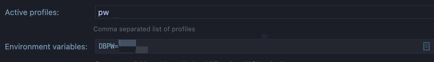 이때, 비밀번호 부분을 환경변수로 지정해주면 접속 정보를 은닉하여 안전하게 github에 업로드할 수 있습니다.