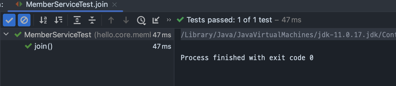 새로운 Member가 회원가입을 하고, 이를 다시 찾아내어 제대로 회원가입이 되었는지 확인하는 testcode