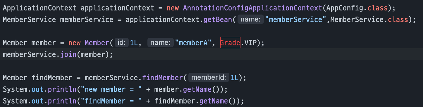 이렇게 등록한 객체인 bean을 ApplicationContext 라이브러리를 통해 사용할 수 있다. (하단참조)