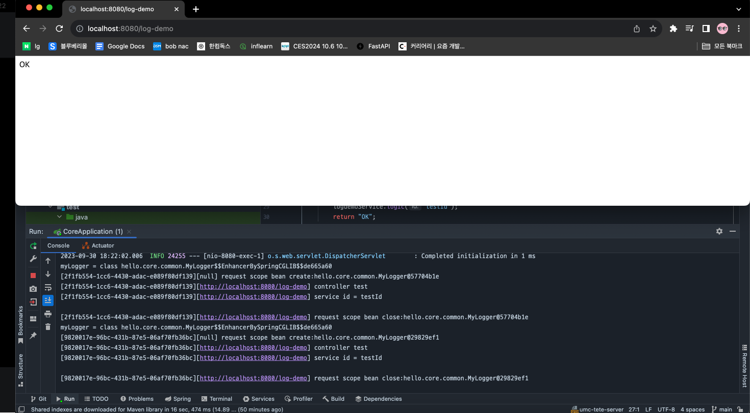 [d06b992f...] request scope bean closehttp 요청이 들어오면 이런 로그가 남도록 test를 작성해볼 것이다.