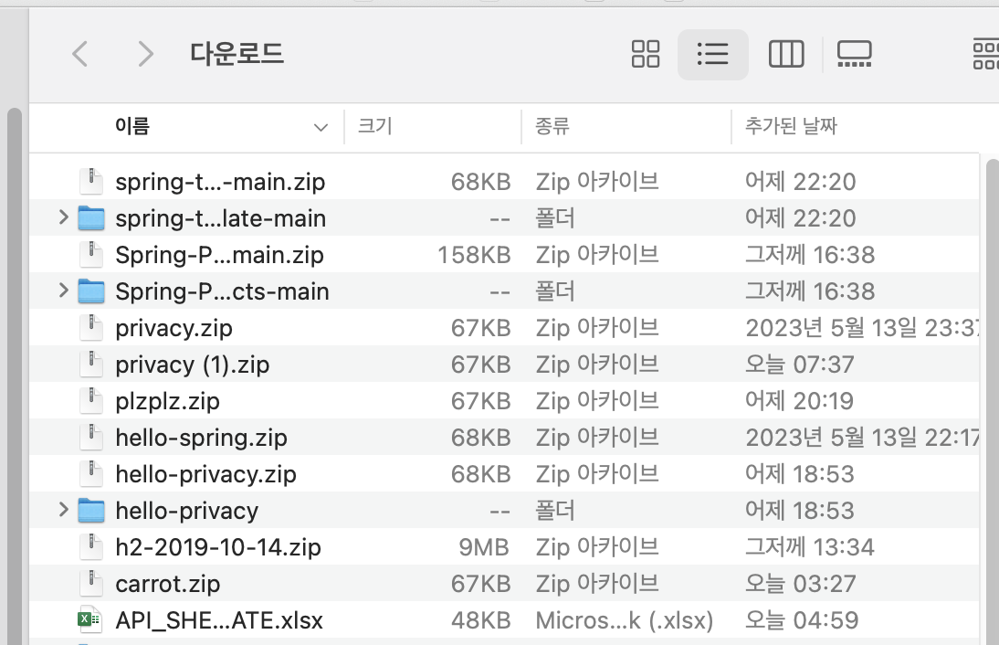 ... 저는 뭐가 많네요.. 본인이 생성하신 zip파일 압축해제하시면 됩니다