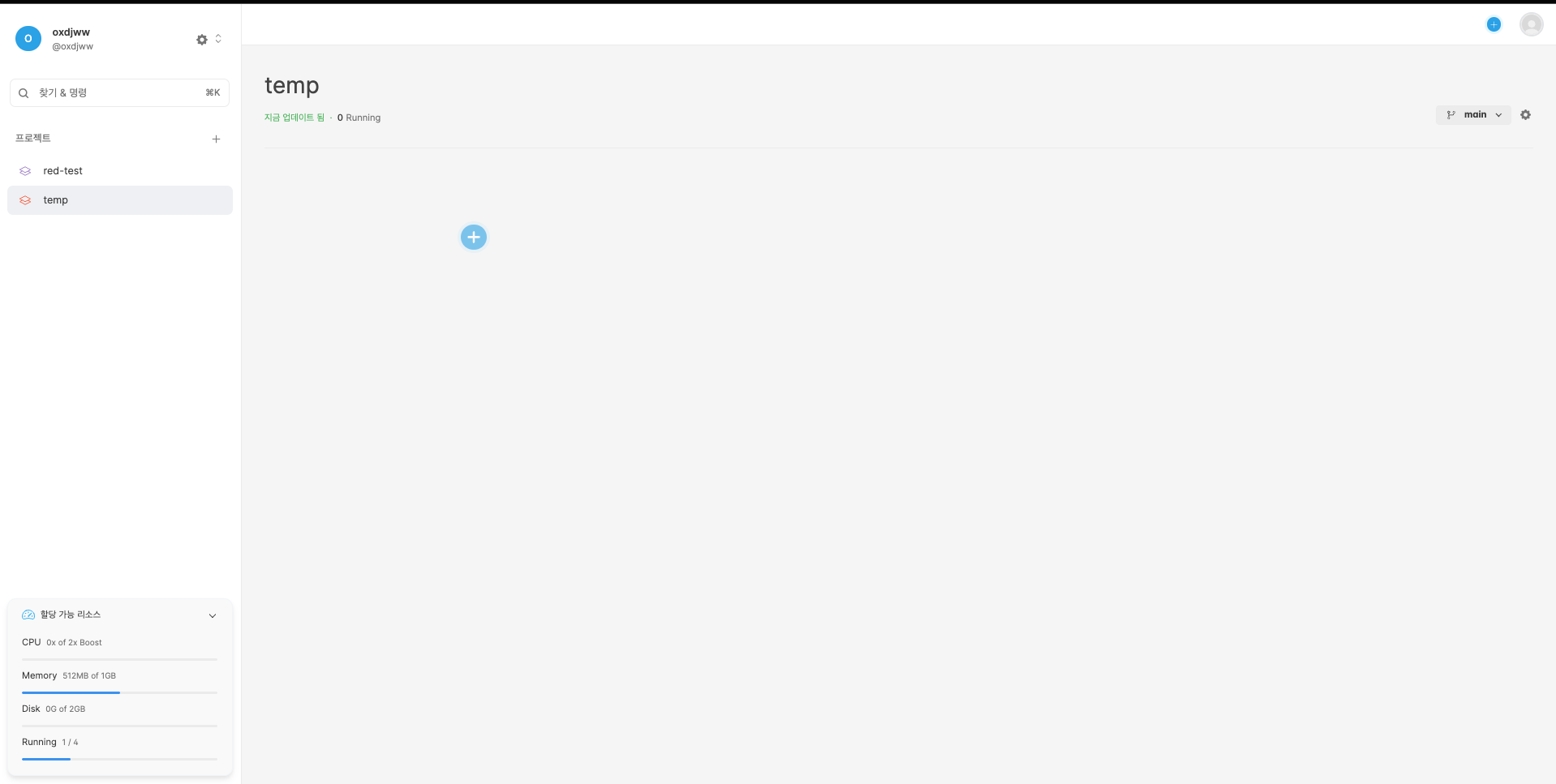 회원가입 후 좌측 배너의 '+' 버튼으로 새 프로젝트를 생성해준다.