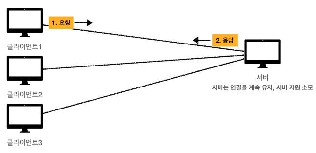 그러므로, 통신을 하지 않는 client와의 불필요한 연결 유지를 하지 않기에 리소스 낭비를 하지 않는다.