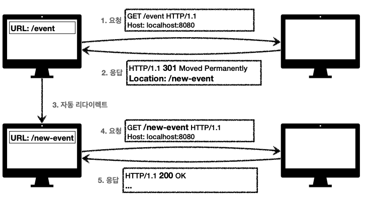 - 영구 리다이렉션 : 특정 리소스의 URI가 영구적으로 이동됨