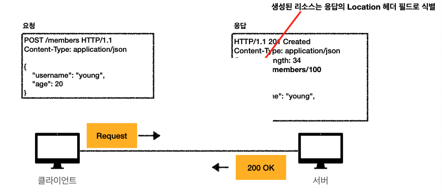 새롭게 생성된 리소스의 URI는 응답 메시지의 Location 필드로 식별할 수 있다.
