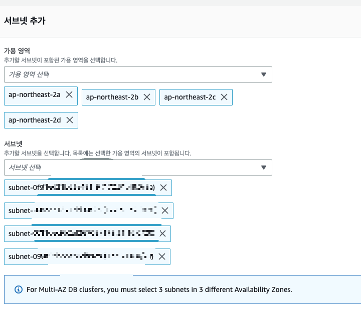 사용 가능한 모든 서브넷을 선택해주었다