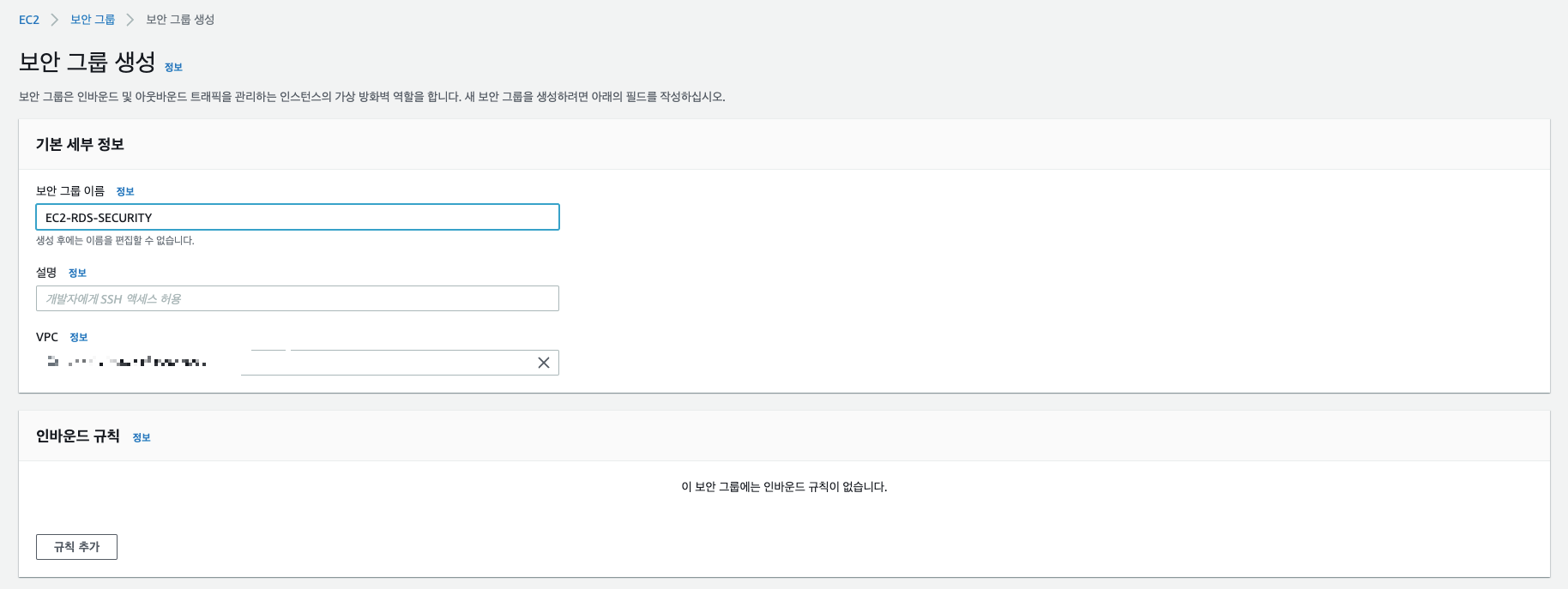 보안그룹을 생성해준다