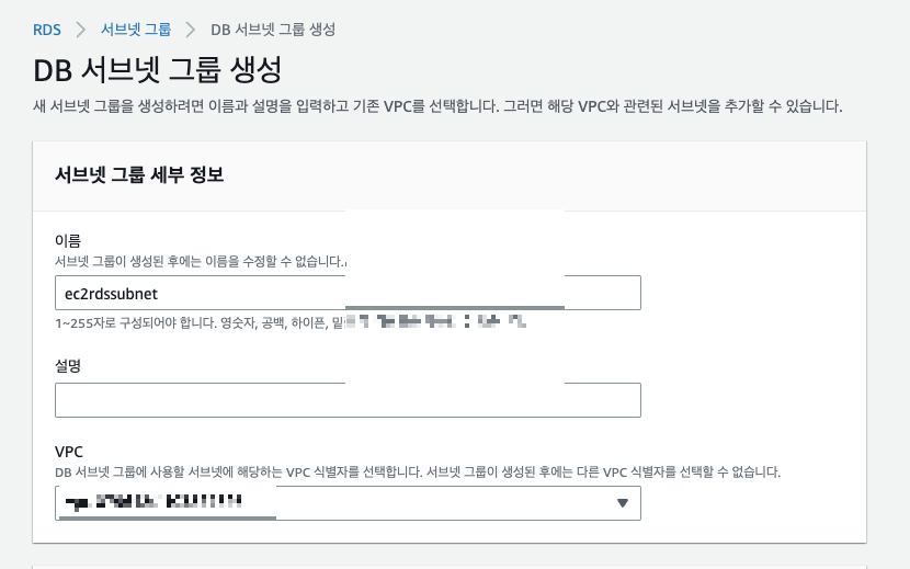 서브넷 그룹을 생성해준다