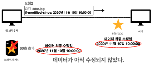 • 캐시 유효 시간이 초과해서 서버에 다시 리소스를 요청하면 다음 두 가지 상황이 나타난다.