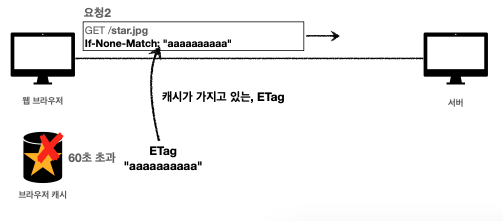 이 때, 만료된 캐시가 갖고 있는 ETag값을 추출하여 If-None-Match 필드에 실어 보낸다.
