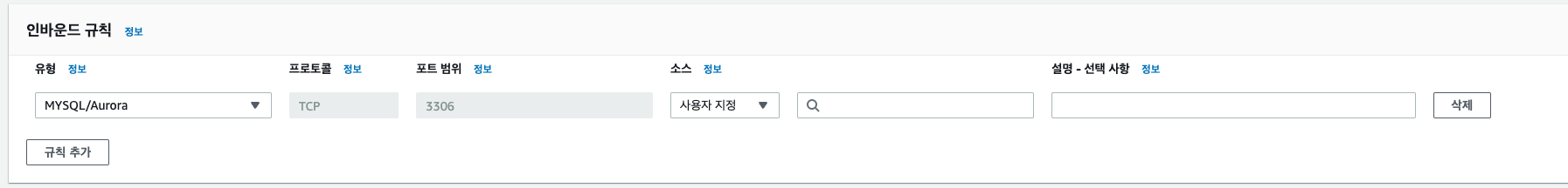 인바운드 규칙은 다음과 같이 설정해준다