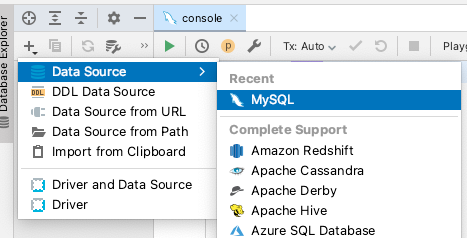 실행 후, 좌측 상단 + 버튼을 통해 MySQL과 연결할 준비를 한다