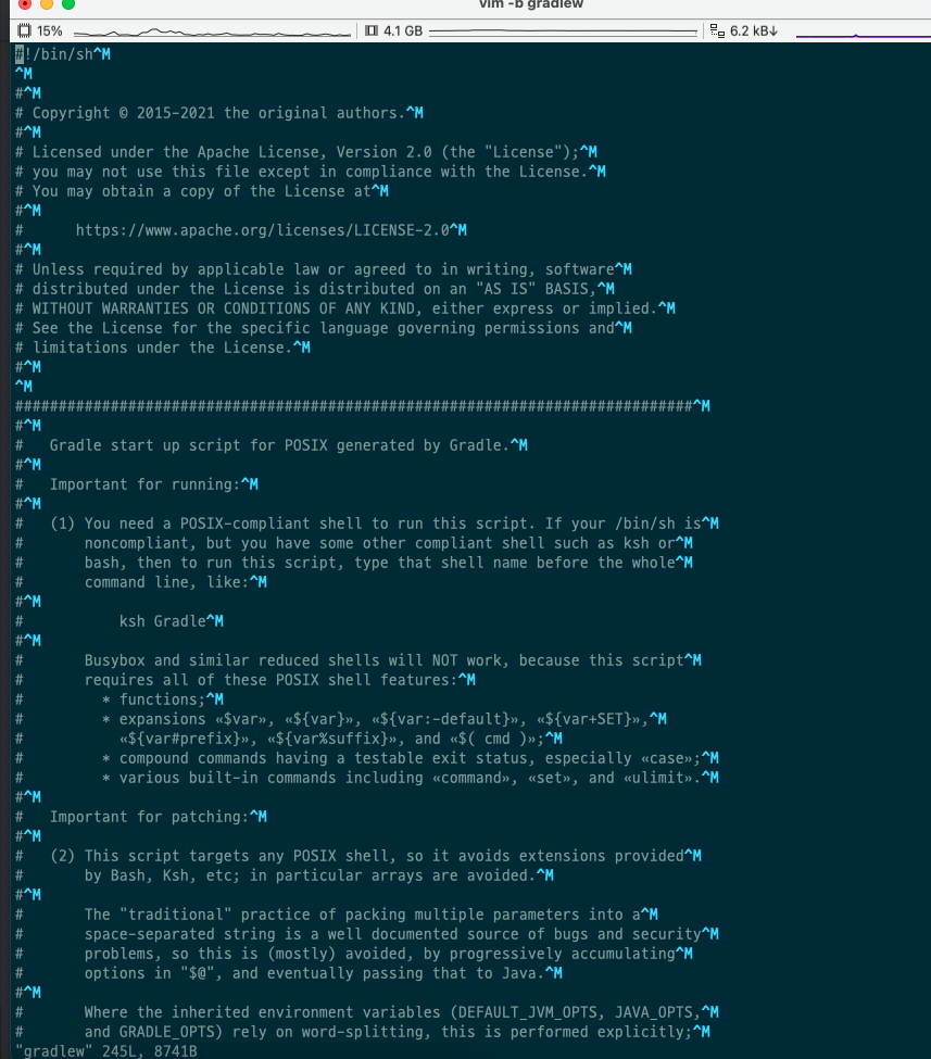 Overview Git clone시 OS간 차이에서 발생하는 빌드 문제를 해결하는 방법을 다룬다. Issue 평범하게 자바 소스코드를 Git clone 받았다. 그리고, 정상적으로 실행이 되는지 $ ./gradlew clean test를 진행했다. 하지만 아래와 같은 오류를 만날 수 있었다. zsh: ./gradlew: bad interpreter: /bin/sh^M: no such file or directory 처음에는 단순한 오류인줄 알고, 늘 그렇듯이 로그를 바탕으로 구글링을 했다. 정보를 찾아본 결과, OS간 개행문자를 처리하는 방식이 달라서 gradlew 파일이 git clone시 변화됐음을 확인할 수 있었다. remote 파일 #!/bin/sh # # Copyright © 2015-2021 ..