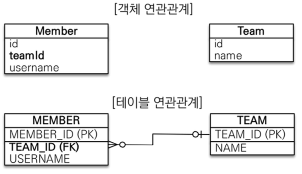 ✅ 연관관계 매핑의 필요성 모델링의 두 방식의 차이점을 비교하며 연관관계의 필요성을 알아보자. ✅ 테이블 중심 모델링 ![Untitled] 테이블 연관관계에 맞추어 객체를 모델링 해보자 🌱 엔티티 매핑 참조 대신에 외래키를 그대로 사용하여 다음과 같이 Member 와 Team 을 작성할 수 있다. @Entity public class Member { @Id @GeneratedValue private Long id; @Column(name = "USERNAME") private Long teamId; ... } @Entity public class Team { @Id @GeneratedValue private Long id; private String name; ... } 🌱 엔티티 다루기 위와 같이 작성..
