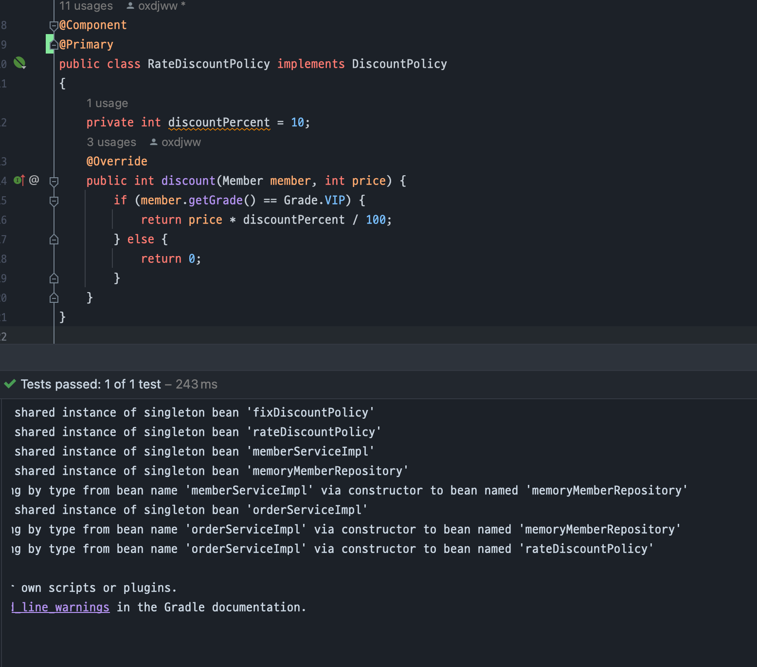 Intro 본 카테고리는 Inflearn 김영한 강사님의 스프링 핵심 원리 강의를 수강하며 이해하고 학습한 내용을 정리한 내용으로 구성되어 있다. 본 포스팅에서는 빈 조회 시 중복된 빈들에 대해 우선순위를 적용해 보다 쉽게 빈을 찾을 수 있는 방법에 대해 다룬다. @Autowired @Autowired 어노테이션은 기본적으로 Type으로 빈을 조회하여 DI한다. 이는 ac.getBean(DiscountPolicy.class) 와 유사하게 동작하는 것으로 볼 수 있다. 즉, interface인 DiscountPolocy.class로 조회 시, 해당 interface를 구현한 FixDiscountpolicy.class와 RateDiscountPolicy 두 개가 스프링 빈으로 모두 등록되어 있으면 문제가 발..