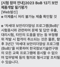 한국정보기술연구원 (KITRI)에서 주관하는 차세대 보안 리더 양성 교육 (Best of the Best) 12기에 지원하였습니다.