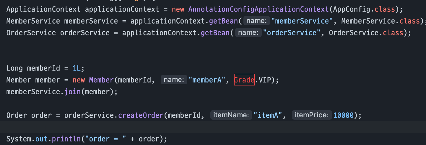 @Configuration이 붙은AppConfig을 설정 정보로 사용함 @Bean이 적힌 메서드를 모두 호출하여 Spring Container에 Bean으로 등록한다.- 이렇게 등록된 Bean은 등록된 메서드의 이름으로 호출하여 사용될 수 있다.