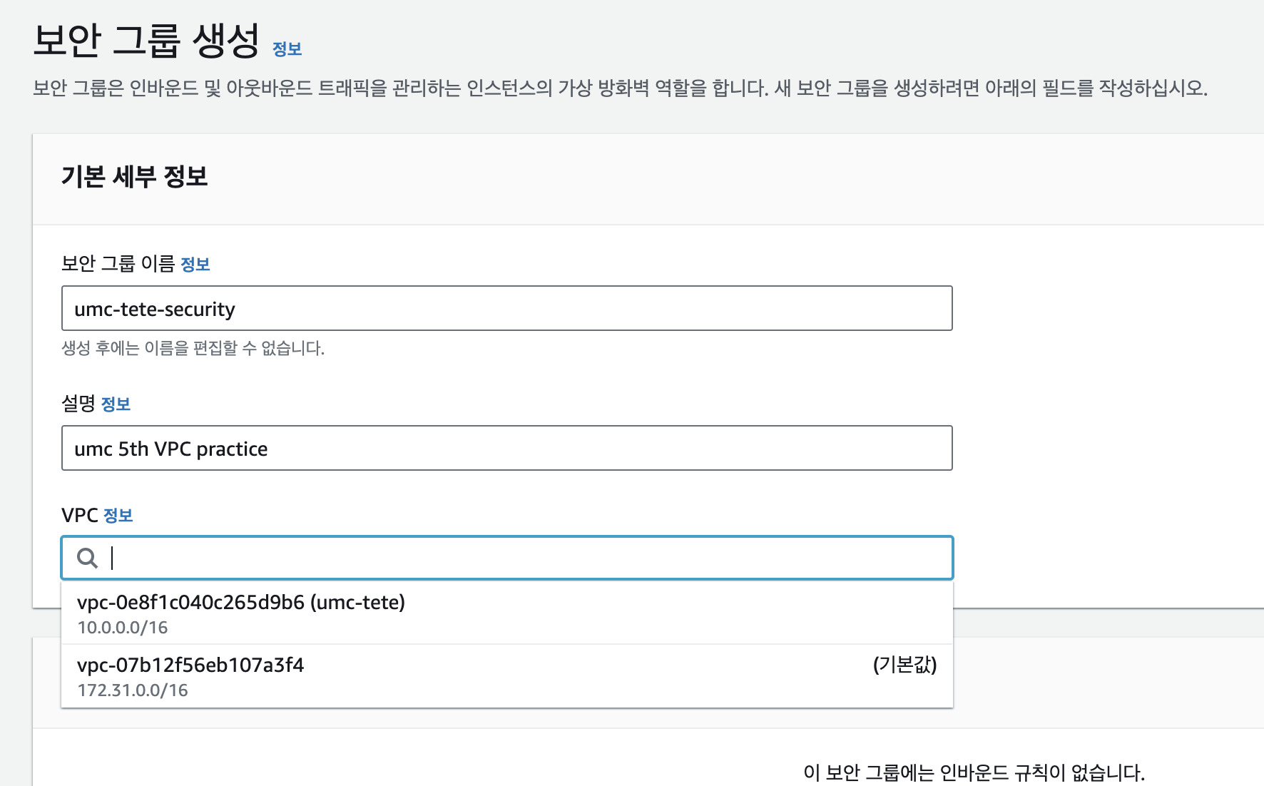 a. 아까 만든VPC의VPC ID를 선택해준다.