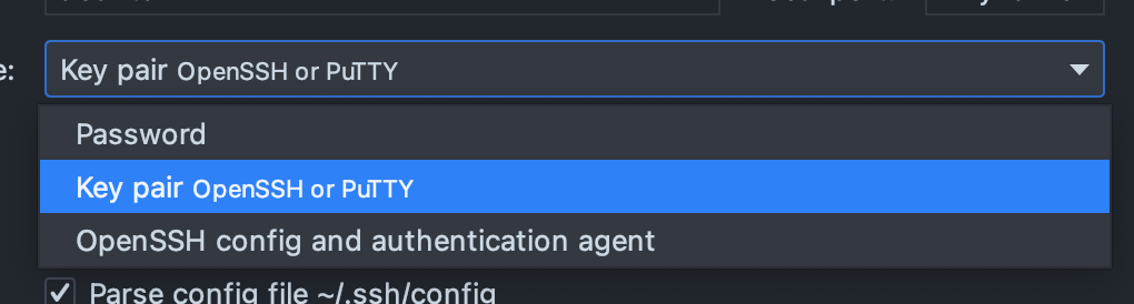 c. 나머지는 다음과 같이 입력하면 된다.`Host` : {EC2 Instance의 public IPv4} `Username` : ubuntu `Authentication type` : Key pair OpenSSH or PuTTY `Private key file` : {`*.pem` 파일의 경로}나머지는 기본 값으로 설정하고,