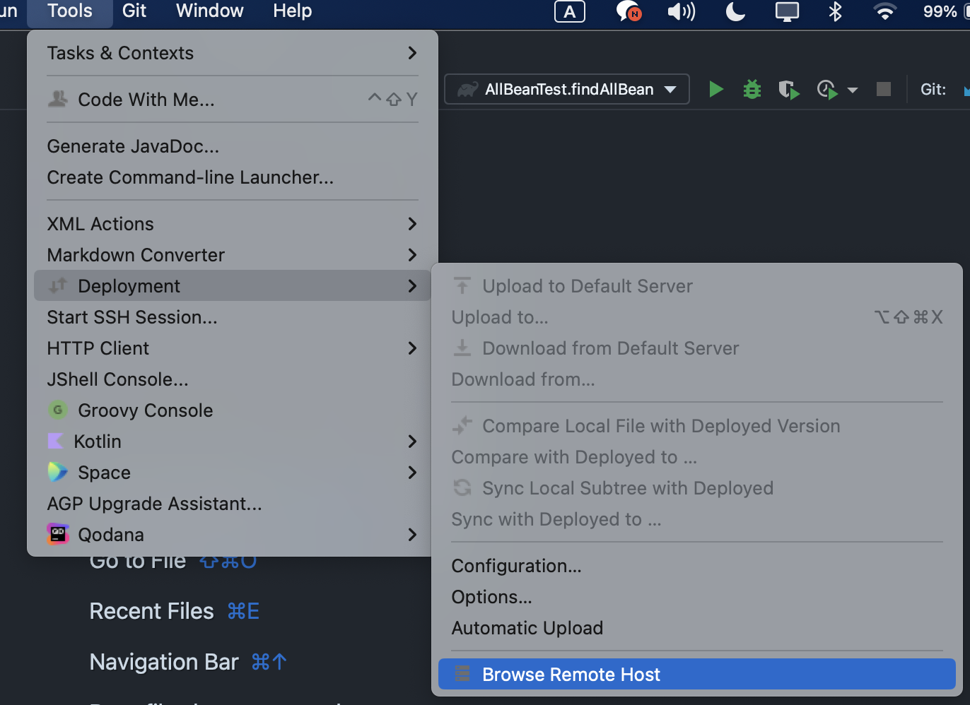 Tools > Deployment > Browse Remote Host을 선택한다. (Mac os 기준)