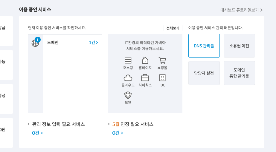 결제 후, My 가비아->DNS 관리툴 로 들어가준다