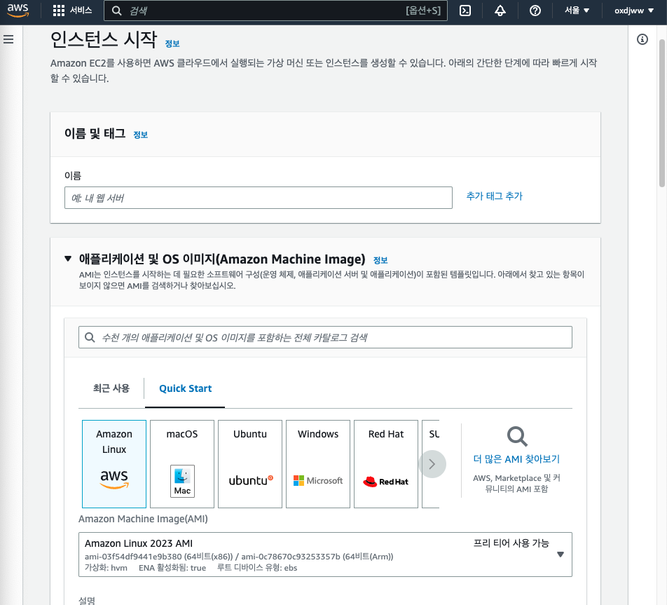 그리고 인스턴스 시작 버튼을 통해 인스턴스를 생성해줄 것이다.