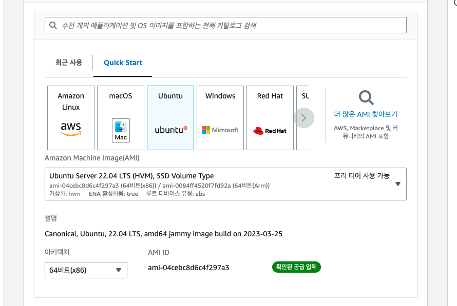 이름은 자유롭게, 서버는 우분투를 선택해준다.