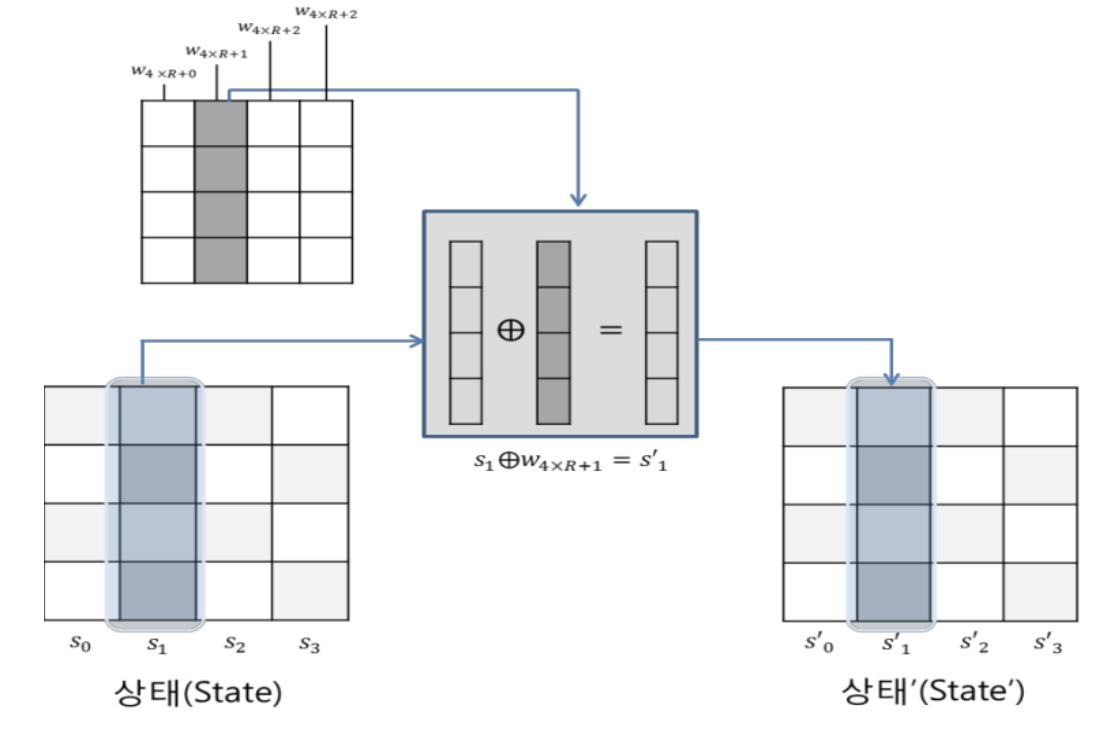 | AddRoundKeystate와 seed를 이용한 KDF 부터 생성된 각 round 별 128bit의 키를 XOR 연산을 진행한다.
