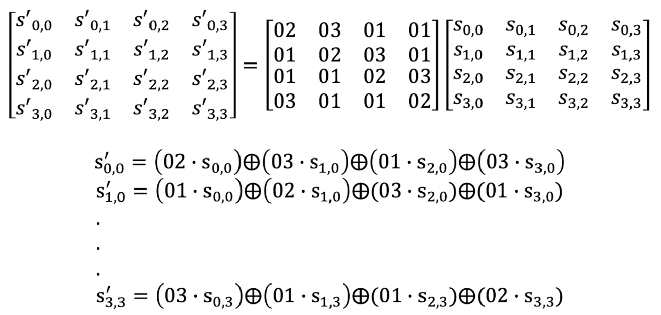 복호화 시에는 Inverse MixedColumn, 역행렬을 통해 MixedColumns를 진행한다.