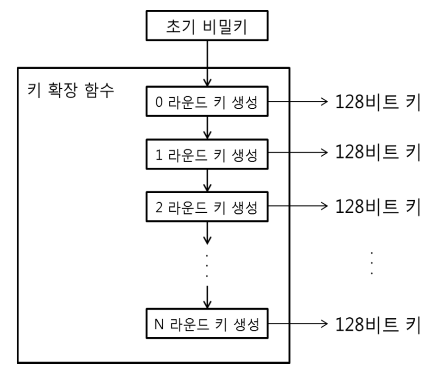 이렇게 키를 확장해나갈때, 처음 key값을 seed(값)이라 표현하는데, 이 값만 잘 숨기면 훌륭한 암호체계가 된다.