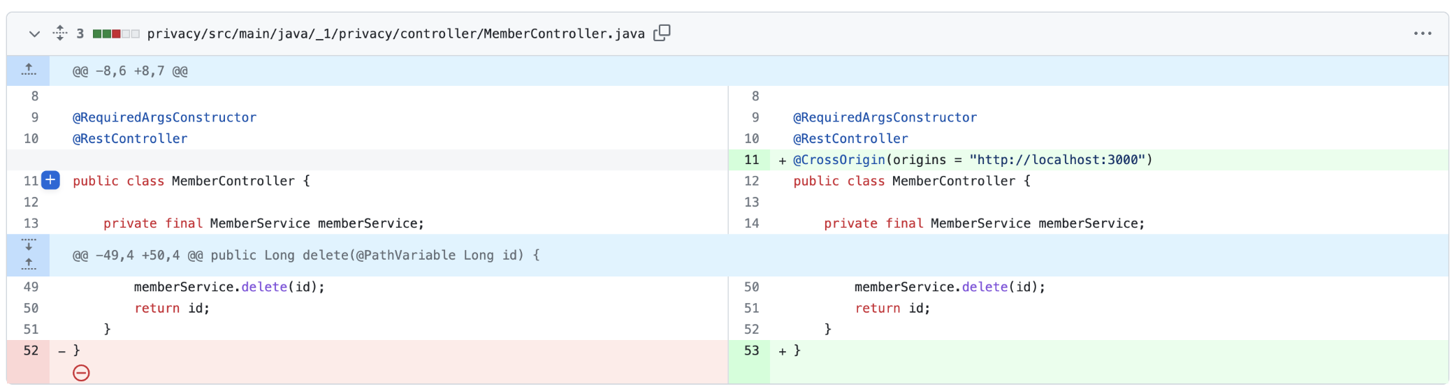 + Client(front)가 접근가능하도록 접근헤더도 추가해주어야 한다고 한다..