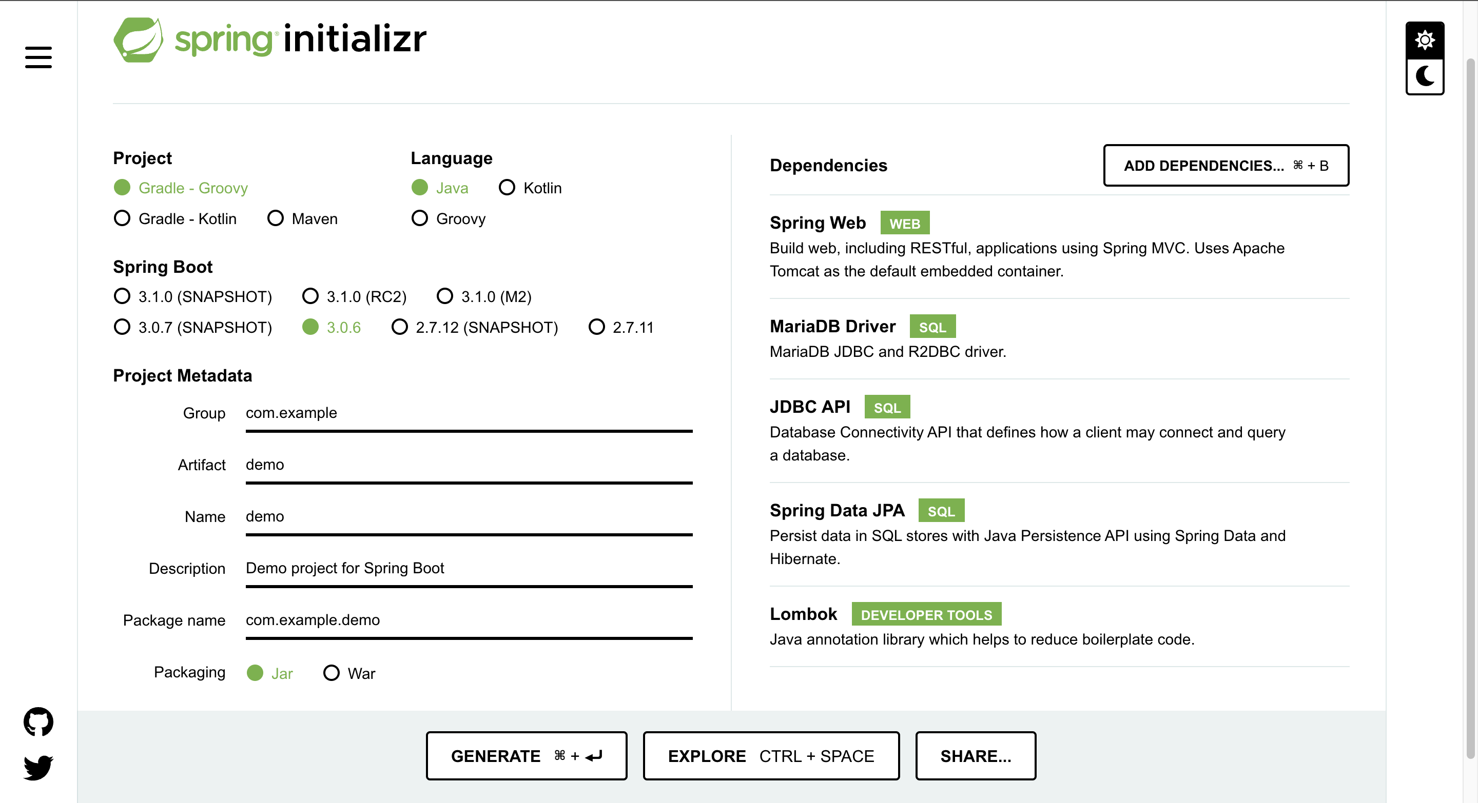 1. SpringBoot starter를 통해 파일을 만들어준다.