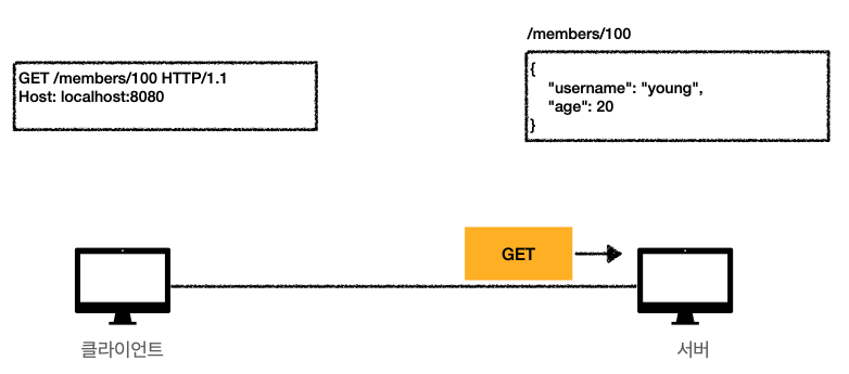 - GET은 쿼리 파라미터를 사용해서 데이터를 전달한다.