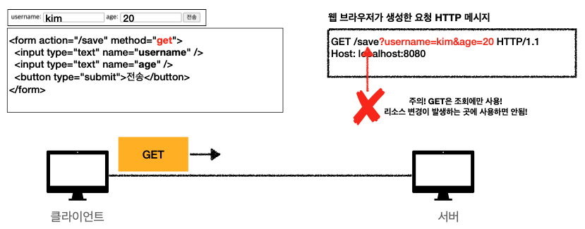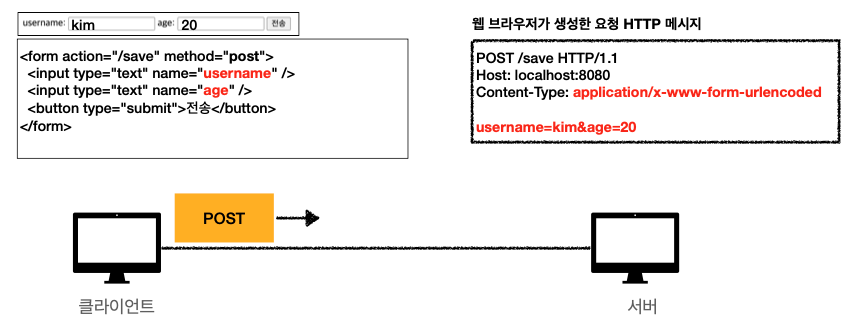 HTML Form을 이용해서 HTTP 요청 메시지를 전송한다.