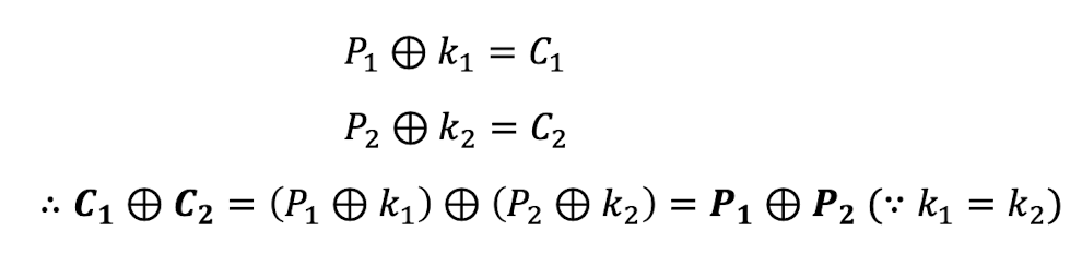 - 한 평문 안에 동일한 두 개의 블록에 대응되는 암호문 블록이 상이
