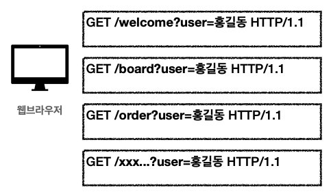 - 클라이언트와 서버는 서로 상태를 유지하지 않는다.쿠키 미사용시 대안