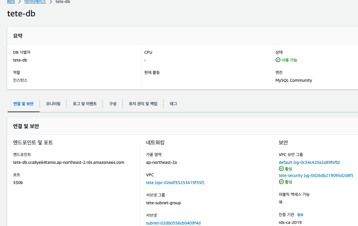 이름은 tete-subnet2로 지정해주었고, 필요한 값들을 할당한다.