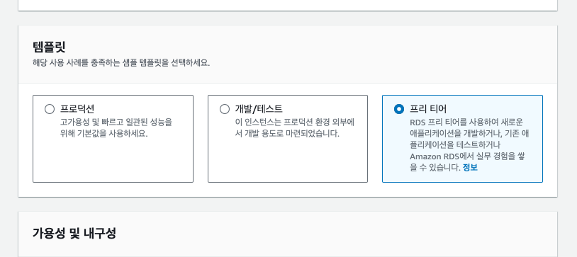 무료로 사용할 수 있는 프리티어를 선택한다.