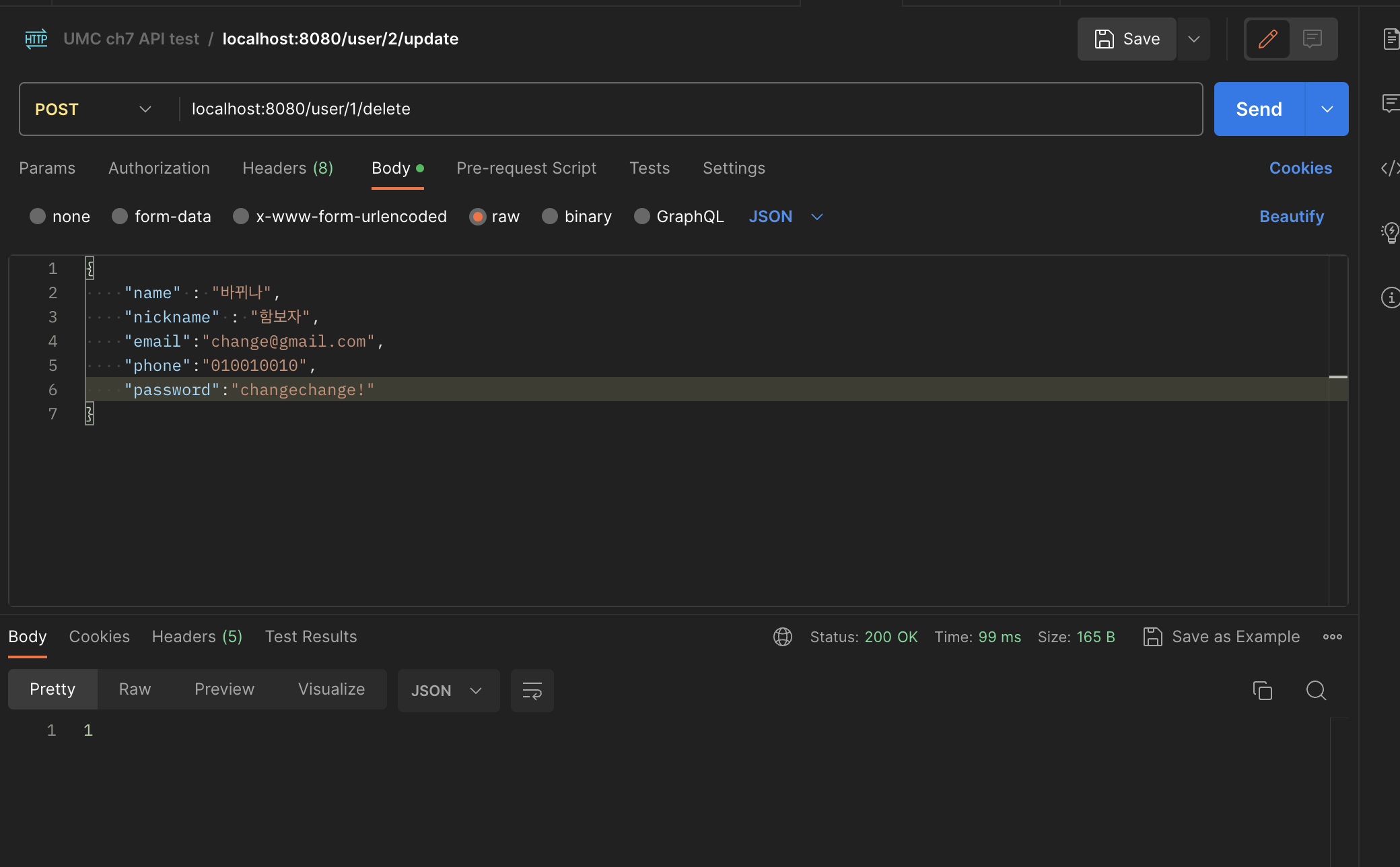currentUser.update(user.getName(), user.getNickname(), user.getPhone(), user.getEmail(),user.getPassword());
